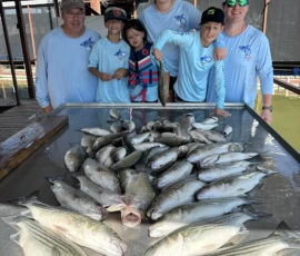 Welcome to Texoma Trips, your go-to Lake Texoma striper fishing guide for an unforgettable adventure! Our family-friendly Texoma fishing charters are perfect for beginners and experienced anglers alike. All you need to do is show up with a valid Texoma fishing license, and we’ll take care of the rest!